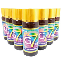 G7 is a patented technology on its good absorption which contains 2000mg collagen (FSC). Enzymatic decomposition method has better absorption rate than collagen with higher molecular weight, so it is transmitted deep into the body. You can supplement 2000mg of collagen by taking one bottle of G7.