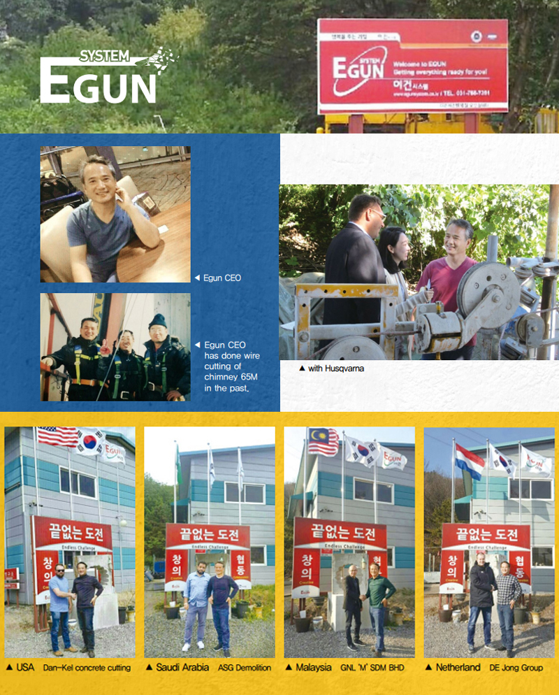 Company Overview Egun GCC, established in 2016, is Korea's leading nuclear decommissioning equipment manufacturer specializing in diamond wire saws, robotic cutting systems, and eco-friendly dust collection technologies with 31 patents and $1M exports to 8 countries. Factory Information Our integrated facility in Gwangju-si, Gyeonggi Province features R&D labs, precision machining, and assembly lines meeting ISO 9001/14001 and CE certifications. Our Service We provide precision concrete cutting for radioactive structures, remote-controlled robotic equipment minimizing radiation exposure, and advanced dust collection systems. Services include equipment rental, technical consulting, training, and maintenance support. Our Policy We prioritize worker safety through automation, minimize environmental impact while maximizing resource recycling. As a certified climate tech company, we're committed to carbon neutrality and sustainable nuclear decommissioning.